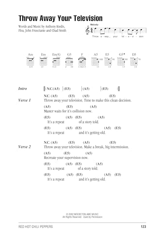 - 144 pages, Size: 9" x 5.88", Artist: "Red Hot Chili Peppers", ISBN: 0634096486, Songs include "By the Way," "Californication," "Give It Away," "Love Rollercoaster," "Porcelain," "Save the Population," "Scar Tissue," "Suck My Kiss," and more