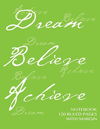 Notebook 120 ruled pages with margin: Dream, Believe, Achieve Notebook with lime green cover, lined notebook with margin, perfect bound, ideal for writing, essays, composition notebook or journal