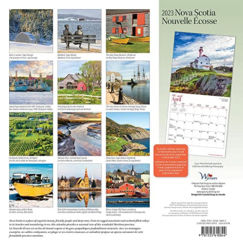 Nova Scotia | 2023 12 x 24 Inch Monthly Square Wall Calendar | English/French Bilingual | Wyman Publishing | Canadian Regional Travel