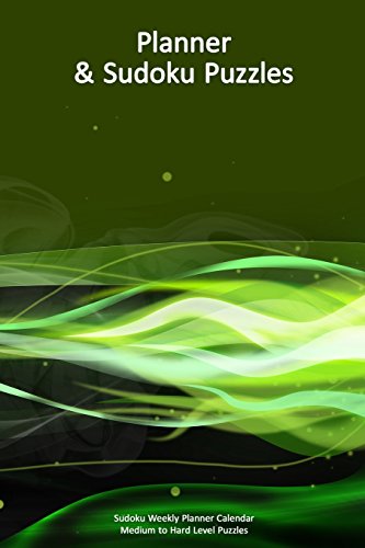 Sudoku Weekly Planner Calendar - Medium to Hard Level Puzzles - Cover Green Fire (6" x 9"): 56 Weeks Undated Planner + 112 Sudoku Puzzles (56 Medium Sudoku + 56 Hard Sudoku with solutions)