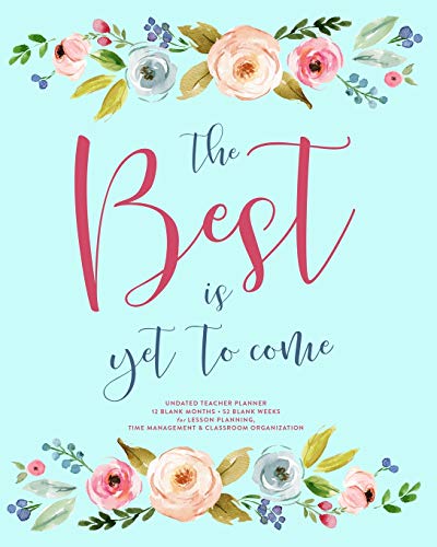 The Best Is Yet To Come, Undated Teacher Planner: Pretty Watercolor Floral Lesson Planning Calendar Book with Monthly At-A-Glance & Weekly Vertical Spreads