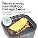 - MAKE EGGS 6 WAYS. If you and your family love eggs, you need the world's most versatile egg cooker in your kitchen. With Egg Bites Plus, you can make up to 4 egg bites, 4 poached eggs, 9 hard-boiled eggs, omelets, scrambled eggs, fried eggs and more., MAKE 4 EGG BITES, 4 POACHED EGGS OR 9 HARD-BOILED EGGS. Cook up to 4 egg bites or 4 poached eggs in about 10 minutes or 9 hard-boiled eggs. It's easy to use — just fill the base of the egg maker with water, add eggs to the tray and plug it in., PREPARE OMELETS, SCRAMBLED EGGS, FRIED EGGS AND MORE. Built-in 5.25” nonstick skillet for making omelets, scrambled or fried eggs and browning sausage links or patties. Food won't stick to the nonstick coating, and it simply wipes clean., EASY TO CLEAN. The egg bite/ poaching tray, hard-boiled eggs tray, water measuring cup and lid are all dishwasher safe for easy cleanup., WATER MEASURING CUP INCLUDED. The convenient cup of this egg bite maker makes it easy to add the exact amount of water, so there's no guesswork and eggs come out perfect every time.