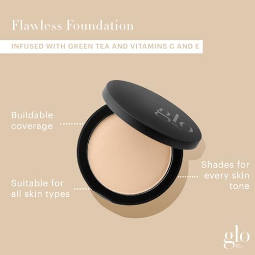 - PRESSED BASE: Flexible, weightless, longwearing coverage, this award-winning pressed powder base is powered by skin-protecting antioxidants and triple-milled minerals for a radiant, natural, second-skin finish., PROTECT: Infused with antioxidants including green tea, and vitamins C and E, this anti-inflammatory, talc-free formulation provides environmental protection against aging free radical damage., COVERAGE: Triple-milled minerals offer that flexible, buildable coverage, for a radiant, second-skin finish without any dryness, cakiness, or flashback. Suitable for all skin types. Ideal for sensitive or post-treatment skin., ALL-DAY WEAR: Providing a weightless, semi-matte finish, this longwearing formulation perfects and blurs, creating a second-skin canvas that stays in place all day., GLO SKIN BEAUTY: Delivering on the promise of healthy, beautiful skin is what drives us every day at Glo Skin Beauty. Our innovative skincare and nourishing mineral makeup collections work together seamlessly to reveal your authentic best.