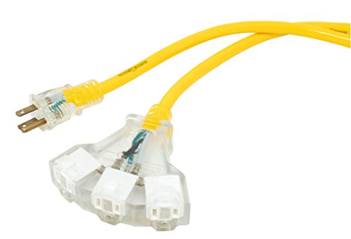Yellow Jacket 2827 12/3 Heavy-Duty 15-Amp SJTW Contractor Extension Cord with Lighted Power Block, 50'