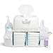 - 12 scented diaper bags included, Flat top is the perfect spot to place your wipe dispenser or wipe warmer, Holds diapers, wipes and ointments, Table top organizer, Tabletop can look neat and clean all the time with our sleek diaper organizer