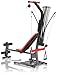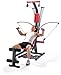 - Get a total body strength workout with affordable home gym, includes rowing machine rail, Provides as little as five or as many as 210-Pounds of resistance, Over 30 strength exercises, Includes horizontal bench press and lat pull down, 300-Pound maximum user weight, requires 100 x 78-Inch minimum workout area