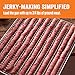 - Makes flat strips of jerky as well as round snack sticks, Heavy duty drive system; Designed to provide years of lasting performance, Holds 3/4 pounds of meat, Includes two nozzles: 1/2" round nozzle and 1 3/16" x 3/16" flat nozzle, One package of Backwoods Jerky Seasoning for four pounds of meat; Complete instructions included