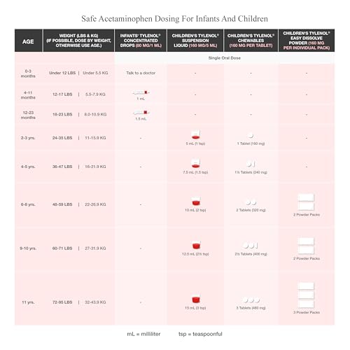 - Infants' Tylenol Dye Free Drops Fever & Sore Throat, 24 mL, provide fast & effective relief of fever & sore throat pain, For ages 0-23 months, or up to 23 lbs; Available in Grape flavour, Each 1 mL drop contains 80mg of Acetaminophen to help reduce fever and relieve mild to moderate pain and sore throat pain, Uses Simplemeasure dosing technology to improve dosing accuracy and reduce the potential for spills