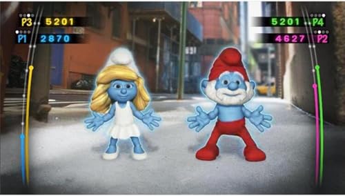 - Enjoy crowd favorite Just Dance gameplay in a whole new way with the cast of The Smurfs, Dance with friends to top-of-the-chart tracks from popular artists like Katy Perry, Selena Gomez, and Aly & AJ, Dance alongside your favorite Smurfs, including Papa Smurf, Smurfette, and Clumsy Smurf, Perform easy-to-follow dance moves choreographed by real experts from various styles of music, Enjoy a true Wii Party experience, Smurf-style, with four-player support
