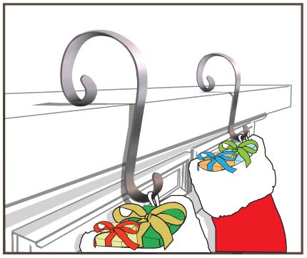 Stocking Scrolls Christmas Stocking Holder Hook 2-Pack-Silver - Works on various mantel sizes including large