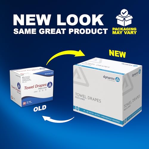 - STERILE PROTECTIVE CLOTH: These Dynarex Disposable Towel Drapes are sterile and act as a protective barrier from moisture and contaminants. In addition, these drapes are 3 ply and have a poly-interlined lining which promotes absorbency., USED IN MEDICAL SETTINGS: Every drape is solid plain and designed to cover an area of the body prior to performing surgical examinations. This type of cloth is used in any medical facility or veterinarian clinic where minor surgical procedures take place., EASE OF APPLICATION: To best use these drapes, place the drape on the scrubbed area of the skin while only revealing the line of incision. Next, the second drape is to be placed in the same manner except on the lower side of the incision line., CONVENIENTLY PACKAGED: These towel drapes are shipped in boxes of 50 with each individual drape being in its' own sterile pouch. This kind of packaging allows the disposable drapes to be easily moved pouch by pouch or box by box as needed., HIGH QUALITY: The Dynarex Disposable Towel Drapes are made from a tissue/poly/tissue blend that encourages protection against contaminants while softly laying on the skin. Dynarex always provides Best in Class alternatives to other leading brands.