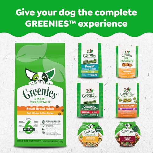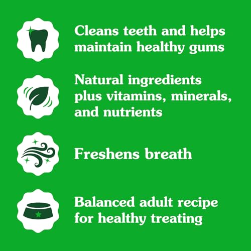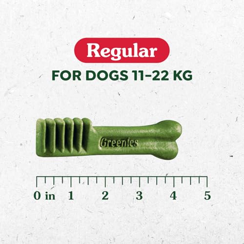 - Contains: One (1) 1.02kg box, 36-count of GREENIES Original Adult Dog Dental Treats, Regular size for dogs 11-22kg, Cleans Teeth, Freshens Breath: Cleans down to the gumline to fight plaque and tartar and freshen breath, Natural Ingredients: Made with natural ingredients, vitamins, minerals, and nutrients, Easy To Digest: Highly soluble ingredients are easy for your dog to digest, Irresistible: The taste dogs love and a delightfully chewy texture that fights plaque and tartar, Veterinarian Recommended: GREENIES dental dog chews are vet recommended for at-home oral care, Treat Daily: Treat your dog to one GREENIES Dental Treat per day