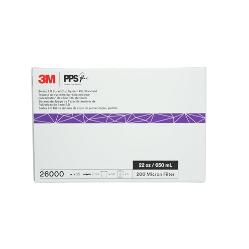 - KIT INCLUDES – 1 reusable paint cup, 50 liners, 50 lids and 32 sealing plugs, DISPOSABLE ALL-IN-ONE SPRAY CUP SYSTEM – PPS 20 Spray Cup System Kit gives you everything you need for an all-in-one solution for measuring, mixing, filtering and spraying paint materials, VERSATILE USES – Standard 22-ounce size ideal for any painting project including cars, boats, furniture, equipment, home, arts and crafts, RANGE OF APPLICATIONS – Use to apply paints, stains, varnishes, basecoats, undercoats, primers, sealers, clearcoats, gelcoats, sprayable adhesives and more, IMPROVED DESIGN – With each lid you get an integrated quarter-turn locking collar, which helps eliminate cross-threading and paint buildup, and a built-in fine-mesh 200-micron filter, commonly used for solvent-based paint coatings, LESS PAINT SPUTTER – PPS 20 lids feature a new domed shape that holds up to 3 ounces of material below the filter, reducing sputter and improving spray performance, REUSABLE PAINT CUP – Includes a standard 22-ounce hard plastic paint cup with printed-on universal mixing ratios and a clear access window for easy paint visibility and quick removal of lid and liner, LESS WASTE, MORE EFFICIENCY – Less paint waste, mess and contamination than traditional methods Use up to 70% less cleaning solvent and shorten prep and cleanup time by as much as 50% compared with conventional metal paint cup systems, For industrial/occupational use only. Not for consumer use
