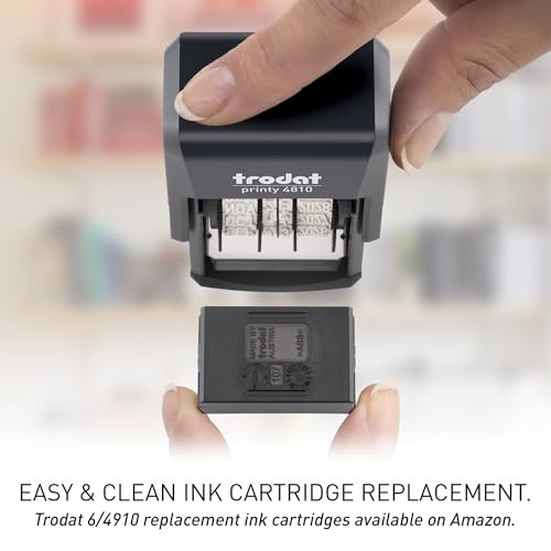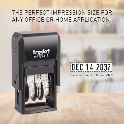 - Dater with 3.8 mm numbers and characters; mmm-dd-yyy, Document proof stamping ink according to DIN ISO 14145-2, no forgery, no fraud, cannot be removed without leaving visible traces, Mechanism rotates ink pad into close position and will absorb surrounding humidity to stay moist, This stamper will print thousands of sharp and clear impressions; replacement pad 6/4910 available in black, blue, red, green, purple, CO2 emissions are reduced during manufacturing; The residual, unavoidable CO2 footprint is compensated by investment in Gold Standard climate protection projects recommended by the WWF