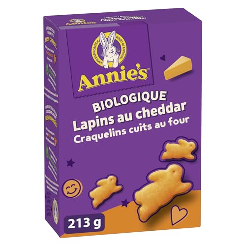 ANNIE'S Cheddar Baked Snack Crackers, Organic, No Artificial Flavours, No Synthetic Colours, Contains Real Cheese and Real Milk Ingredients, 213 Grams Package of Bunny Shaped Crackers