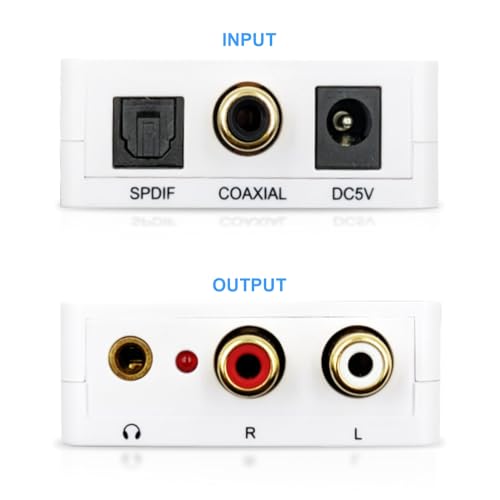 Orei DA21 Optical SPDIF/Coaxial Digital to RCA L/R Analog Audio Converter with 3.5mm Jack Support Headphone/Speaker Outputs