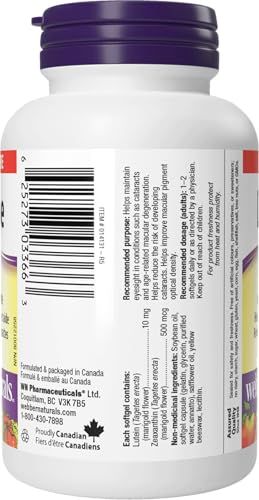 Webber Naturals Lutein 10 mg, 60 Softgels, Eye Support Supplement with Zeaxanthin