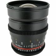 - Angle of view of 84.1 degrees on full frame cameras and 61.8 degrees on APS-C, Ideal for video with de-clicked aperture and follow focus compatibility, Aperture range: T/1.5 - T/22, Minimum focusing distance of 0.85ft (0.25m), Constructed of 13 elements in 12 groups including 2 aspherical lenses, 24mm wide angle cine lens with a t/1.5 de-clicked aperture, Follow focus system is integrated into the quality optics of Rokinon lenses, Minimum focusing distance 1 foot, 13 elements in 12 groups includcing 2 aspherical lenses, Ideal for video use with SLR and DSLR cameras