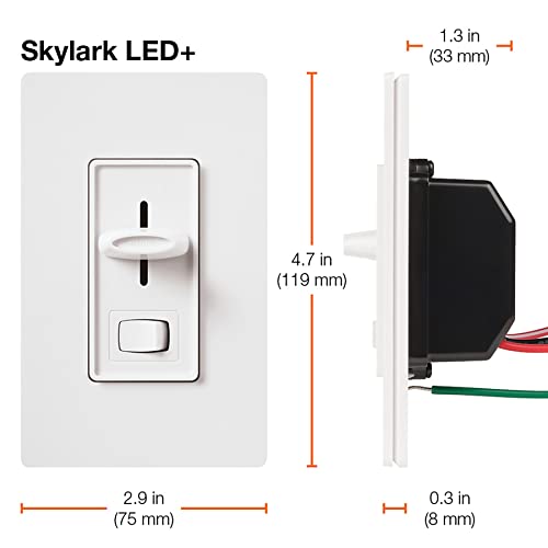 - Tested on 1,s of bulbs and dozens of brands for flicker-free dimming. For list of recommended bulbs view "Compatibility Chart", Provides over 25 lighting levels so you can create the perfect light for any activity, Works with up to 15 Watts of dimmable LED/CFL bulbs or 6 Watts of Incandescent/Halogen bulbs, Lutron patented technology to optimize the dim range of your bulb and prevent interference with other dimmers in the home, Can be used in single-pole or 3-Way applications, where lights are controlled from one or two locations, Rocker switch turns lights on/off to favorite light level. Slider dims and brightens the lights, Installs in as little as 15 minutes in homes of all ages – NO NEUTRAL REQUIRED, Includes (1) Skylark LED+ (formerly C.L) Dimmer Switch; coordinating wallplate sold separately