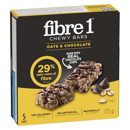 - FIBRE SNACKS: 28% of daily value of fibre per 35 g, with unbelievably delicious taste, TASTY INDULGENCES: A high fibre bar with a chocolatey coating and decadent dark chocolate chunks., NATURALLY FLAVOURED: naturally flavoured bar, with no artifical flavours and no artifical colours for a delicious snack. Now You Can Have What You Crave., ON-THE-GO SNACK: individual snacks are the perfect addition to any day out, BOX CONTAINS: 175g box, 5 bars