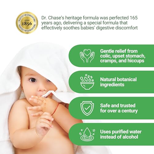 - COLIC RELIEF FOR NEWBORNS: Colic is physically and emotionally frustrating for babies and their parents. Our formula is based on a natural old-time English remedy that has given children and infants safe, effective and fast gas relief for over a century, CALMING GRIPE WATER FOR INFANTS: Dr. Chase Kolik Gripe Water provides comfort and relief to baby colic, gas, upset stomach, cramps, and hiccups; Formulated with anti-gas and stomach calming properties to ease fussiness, SAFE & EFFECTIVE BABY SUPPLIES: Our alcohol-free infant gas relief formula uses purified water instead of alcohol to extract stomach-calming properties from fennel seeds, EASY TO ADMINISTER: Shake well before each use; Gripe water is an oral suspension, correct dosage should be applied by dropper or syringe into your babys mouth or in an empty bottle, A TRADITION OF CARING: The Chase tradition of caring for children goes back to 1856, when the respected Dr. A.W. Chase cared for his patients and delivered over 3,000 healthy babies