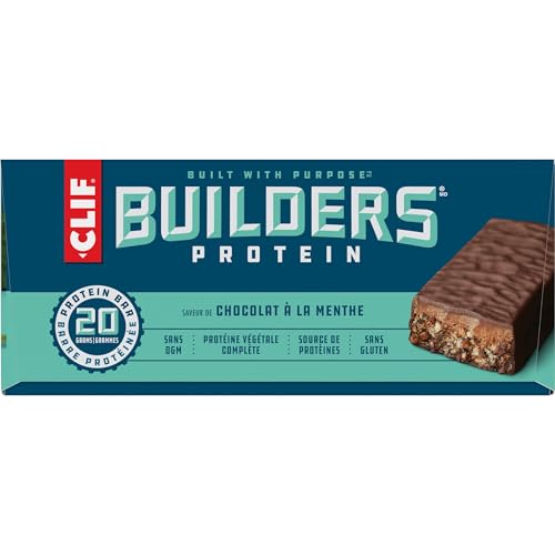 - CLIF Builders Protein Bars include 20 g of plant protein which help build strong muscles and repair body tissue, as well as carbohydrates which supply energy., CLIF Builders Protein Bars are enrobed in chocolate coating, delivering a delicious taste and satisfying texture that you deserve after a workout., CLIF Builders Protein Bars are best eaten with water after training or competing, ideally within 30 mins, to aid muscle recovery and growth., CLIF Builders Protein Bars are gluten-free, contain no artificial sweeteners, and are made from non-GMO ingredients., CLIF Builders Protein Bars are proudly prepared in Canada.