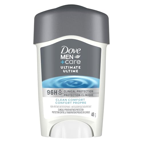 - POWERFUL CLINICAL PROTECTION: Dove Men+Care Clinical Protection Clean Comfort Antiperspirant Stick gives you 96h sweat protection while caring for sensitive skin, NON-IRRITANT FORMULA: This Antiperspirant stick is formulated with 1/4 Moisturizing Cream to help retain skin moisture and help protect against irritation for more comfortable underarms, LONG LASTING FRAGRANCE: Dove Men+Care Clinical Protection Clean Comfort Antiperspirant Stick features a long-lasting subtle fragrance to keep you feeling fresh and confident all day, HOW TO USE: Apply this Clinical Strength Antiperspirant Deodorant Stick on your underarms, CARE FOR THE PLANET: Each Dove Men+Care antiperspirant stick can be recycled. Follow the How2Recycle instructions on the back. Dove Men+Care antiperspirants are PETA-certified Cruelty-Free., CLEAN COMFORT RANGE: Try the full range of Dove Men+Care products, including antiperspirant deodorants, dry spray antiperspirant deodorants, face and body bars, and other hair and skin care products