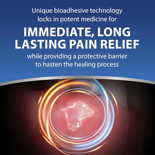 - Treatment for sores inside the mouth, With it's patented bioadhesive, the gel forms a barrier over your sore locking in powerful medicine, You don't have to worry about continually reapplying and you can eat and drink pain free for up to 6 hours, Active Ingredient : Benzocaine 10%