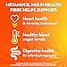 - LIGHTEN UP by trapping and removing the waste that weighs you down* by taking Metamucil fibre capsules., ONLY TWO INGREDIENTS. Metamucil Multihealth Fibre Capsules are made with only two ingredients, including plant-based psyllium husk fibre., HELPS SUPPORT HEALTHY BLOOD SUGAR LEVELS. Taking Metamucil fibre capsules helps your body maintain healthy blood sugar levels., HELPS LOWER CHOLESTEROL by promoting heart health., EASY TO TAKE IN ANY SITUATION. Metamucil’s simple fibre capsules are easy to take on the go.