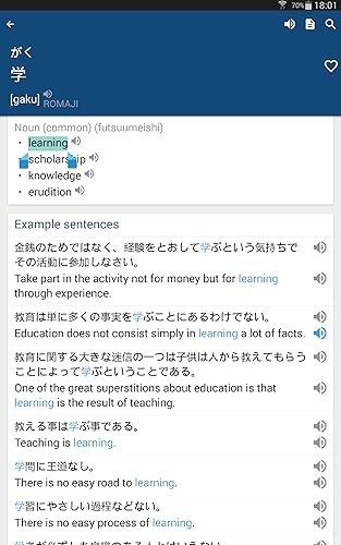 - Detailed word definitions & example sentences, Related search suggestions, Advanced sentences analyzer, Favorite words & search history, Flashcards for self-learning support, Customizable font sizes for better readability, Japanese (Kanji & Kana), English & wildcard character search support, Japanese, British English & American English pronunciation with phonetics