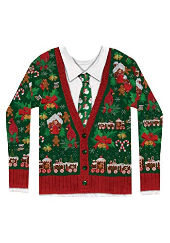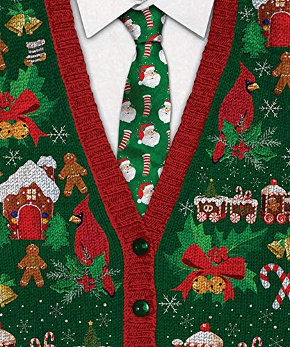 Faux Real Men's Ugly Cardigan with Tie, Multi, XX-Large
