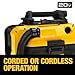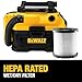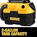 - DEWALT shop vac features cordless or corded operation powered by either an 18V or 20V MAX* battery - or an AC outlet, HEPA rated wet/dry filter of DEWALT 20V vacuum traps dust with 99.97% efficiency at 0.3 microns, DEWALT cordless vacuum has easily accessible, washable/reusable filter; tap or water rinse to clean, Heavy-duty, crush-resistant, fully-integrated 5 ft. (by 1-1/4-inch diameter) hose provides durability, flexibility and ease-of-use, On-board hose, cord and accessory storage makes the vacuum easy to carry/transport, 2-Gallon tank capacity provides enough storage to empty a toilet or clogged pipe, 31 CFM