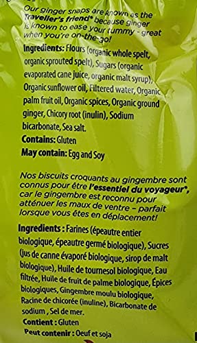 - These Organic Spelt Ginger Snaps have no preservatives, additives, trans-fat or cholesterol, They are made with Spelt flour, and are Wheat-Free, They are low in sugar and fat and made with finest spices chosen for their flavor and health benefits, They are probiotic and prebiotic, Nut and dairy free