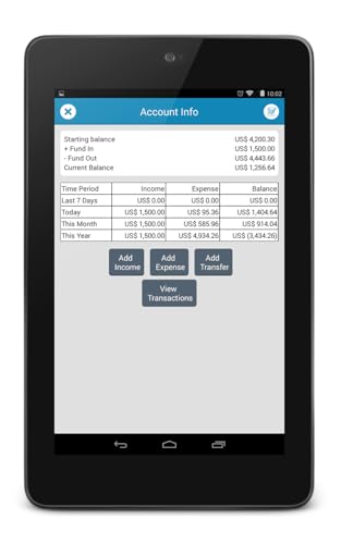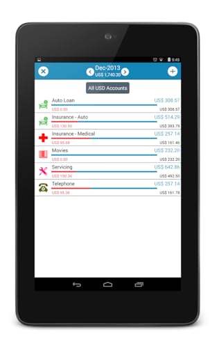 - ACCOUNTS - You can add/edit/delete account with multiple currency., ENTRIES (INCOMES / EXPENSE) - You can add/edit/delete One time or Recurrent Entries(i.e Incomes or Expenses) with or without end date., PAYEES/ PAYERS - You can add/edit/delete ., BILLS - You can add/edit/delete One time or Recurrent Bill with or without end date, also allows to set Bill Notifications., BUDGET - You can add/edit/delete budget., STATISTICS - Helps to trace your cash-flow., SUMMARY - Gives quick summary of Incomes and Expenses., SEARCH - You can search Income, Expense, Transfers and Bills by SubCategory or Tags., SETTINGS - Home Currency, Password Protection, Sync and Dropbox, Display ,Database, Export & Import .csv.