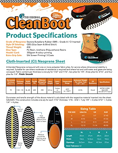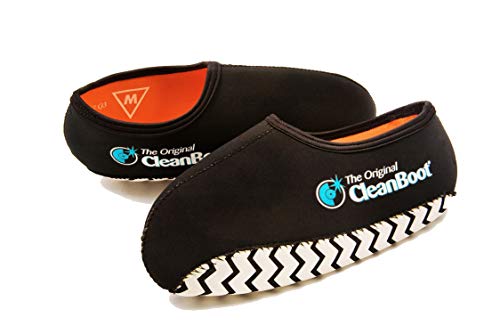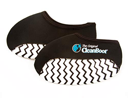 - The Original CleanBoot fits over your existing dirty boots or shoes, allowing you to keep the outside out and the inside clean, Convenient Heel Loop for easy ON/OFF application. Form fitting, durable construction, 100% Neoprene., Reinforces the heel seam for additional protection against wear and tear., Patented Extra Grippy sole for better traction on finished flooring such as carpet, hardwood & tile., Strengthened stitching & glued seams allow for a super durable construction throughout the overshoe.