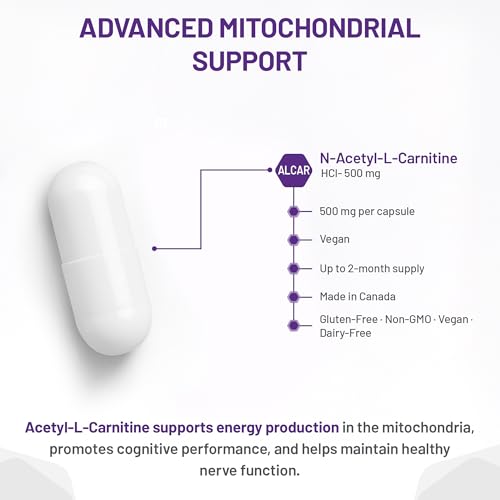 - Enhanced Cognitive Function: AOR - ALCAR is a powerful supplement designed to support and enhance your cognitive function, helping you maintain a sharp and focused mind as you age. The Acetyl-L-Carnitine in this supplement promotes mental clarity and alertness, so you can feel more engaged and present in your daily activities. Experience the benefits of improved focus and mental sharpness with this valuable addition to your wellness routine., Effective Fatigue Reduction: Revitalize your energy levels with this high-quality carnitine supplement. AOR - ALCAR features Acetyl-L-Carnitine, known for its ability to combat fatigue. Feel refreshed and ready to take on the day with renewed vigor. The convenient capsules are easy to swallow, making it simple to incorporate this supplement into your daily life and enjoy a more energetic and fulfilling lifestyle., Relief from Nerve Pain: Discover increased comfort and improved quality of life with this carnitine supplement. AOR - ALCAR is specially formulated to help decrease nerve pain, providing soothing relief for those experiencing discomfort. Embrace a greater sense of well-being and enjoy each day with more ease and comfort., Ideal for Long-Term Health Support: AOR - ALCAR is a high-potency supplement designed to provide ongoing support for your overall wellness. Regular use can lead to noticeable improvements in energy levels, neurological health, and overall well-being. Experience the lasting benefits of this exceptional supplement as you continue to invest in your long-term health., Superior Quality & Value: AOR - ALCAR is a brain supplement offering exceptional potency and quality. Its concentrated formula provides excellent value, potentially saving you money compared to other options. Enjoy the convenience of easy-to-swallow capsules and the peace of mind that comes with choosing a top-quality product that is Dairy-Free, Gluten-Free, Non-GMO, and Vegan.