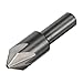 - High-speed steel tools are good for most general purpose applications, offering a combination of hardness and toughness for wear resistance, 6 flute chatterless countersink, Round shanks allow use with a wide variety of toolholding systems, Through-hole flute style has a single flute that passes through the cutting head to reduce vibration and chip clogging; also called "zero flute", Designed to provide more metal removal then the 1,2,3, and 4 flute countersink