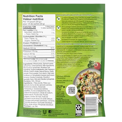 - Knorr Sidekicks Fettuccine Alfredo Pasta Side Dish expertly combines golden and spinach rippled pasta in a Parmesan cream sauce, Knorr Sidekicks Fettuccine Alfredo can be enjoyed as an easy-to-prepare quick meal that cooks in 7 minutes, For a quick meal, boil 250ml water/250ml milk/15ml margarine (optional). Stir in contents, return to boil. Boil gently for 7 mins until pasta is tender, stirring occasionally. Let stand, stir, serve, Knorr Sidekicks Fettuccine Alfredo Pasta Side contains no artificial flavours or colours, Perfect as part of a delicious Knorr recipe or as a standalone pasta side, Knorr Sidekicks Fettuccine Alfredo Pasta Side Dish is a combination of classic flavours in an easy-to-make side dish. Knorr pasta dishes that the whole family will love