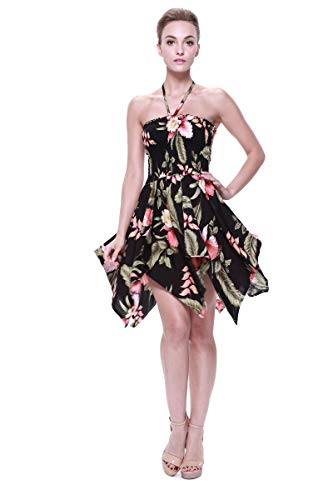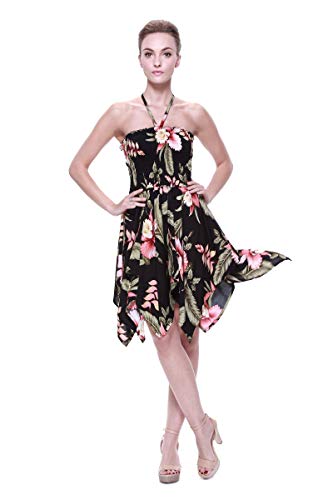 Hawaii Hangover Women's Hawaiian Gypsy Fairy Uneven Bottom Luau Dress in Rafelsia Black