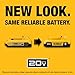 - Premium XR Lithium Ion pack provides up to 60% more capacity than standard DEWALT 20V MAX battery pack (DCB200), 3-LED fuel gauge system of DEWALT battery allows immediate feedback on state of charge, No memory and virtually no self-discharge for maximum productivity and less downtime, Lightweight at 1.4 lbs and compatible with entire line of 20V MAX tools
