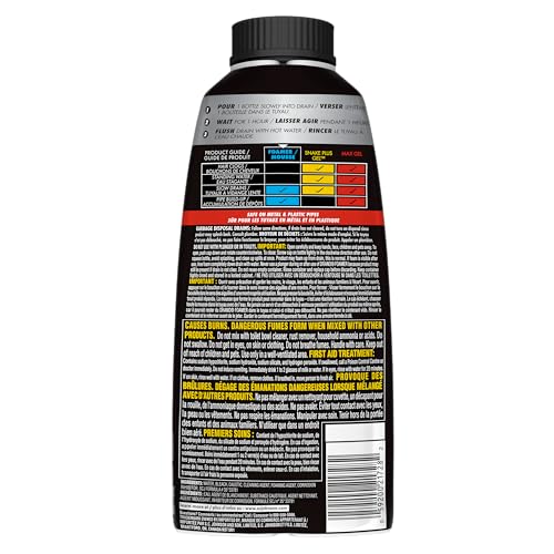 - TRUSTED BRAND: Drano has been used and trusted for generations. Avoid spending money on a plumber and use Drano., GREAT ON GARBAGE DISPOSALS: Drano Dual Force Foamer not only removes clogs, but it also helps clean garbage disposals and leaves them smelling fresh., REACHES WHERE ORDINARY LIQUIDS CAN'T: Foaming action fills the whole pipe and thoroughly clears its walls, dissolving gunk and removes sources of odor. Flush with hot water to remove what's left of the clog., SAFE ON PIPES: Safe for garbage disposals, bathroom, and kitchen sinks., HOW TO USE: For slow-running drains, slowly pour entire contents of bottle down the drain. Allow the product to work for 1 hour. Flush with hot water. Repeat if necessary.