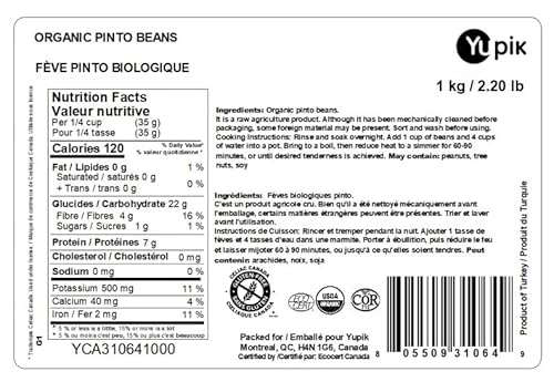 Yupik Organic Pinto Beans, 1 kg, Non-GMO, Vegan & Gluten-Free, USDA Certified, Kosher, Dried Beans, Excellent Source of Protein & Fiber, Perfect for Refried Beans, Soups & Dips