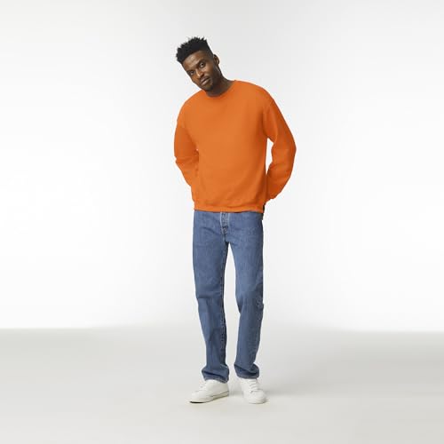 - 8 oz., 50% USA cotton, 50% polyester Pill-resistant air jet yarn 1x1 ribbed collar, cuffs and waistband with spandex, Made with 50% sustainably and fairly grown USA cotton Safety Orange is compliant with ANSI - ISEA 107 High Visibility Standards, Pill-resistant air jet yarn Gildan's manufacturing process utilizes 45% renewable energy, Double-needle stitching throughout Gildan’s Community Investment Program supports education, the environment, humanitarian aid and active living in the communities we do business in, Set-in sleeves