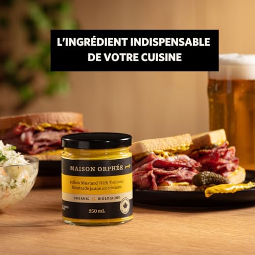 - CLASSIC BBQ CONDIMENT: This organic mustard delivers bold, tangy flavour that elevates burgers, hot dogs, and grilled sausages. A smooth yellow mustard and essential condiments staple for backyard cookouts, picnics, and summer grilling., TIRED OF HEAVY CONDIMENTS?: Some sauces feel heavy or overly processed. This yellow mustard made with low FODMAP organic mustard seeds delivers clean flavour while remaining a lighter option for everyday condiments and summer meals., GOURMET TURMERIC BLEND: Crafted as a premium Gourmet Food mustard, this Moutarde blends organic mustard seeds with turmeric for vibrant colour, depth of flavour, and a clean ingredient profile., VERSATILE KITCHEN USES: Enjoy as a classic spread or mix into a quick Dipping Sauce for chicken tenders, grilled vegetables, and charcuterie boards. A versatile condiments staple for everyday meals and entertaining., TRUSTED CANADIAN QUALITY: Proudly made in Canada with over 40 years of expertise, this premium Organic Mustard reflects trusted craftsmanship and quality ingredients for cooks who value authentic flavour.
