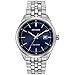 - Watches for Men, 3 Hand, Date, Sapphire Crystal, Blue Dial, Silver-Tone Stainless Steel Band, Fold Over Clasp with Push Buttons, Eco-Drive, Citizen eco-drive is powered by light, a watch that never needs a battery, Sapphire crystal, Japanese-Quartz movement, Case diameter: 41mm, Water resistant to 330 feet