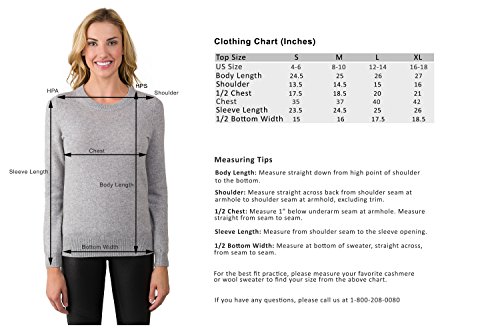 - Substantial 12 gauge knit with tightly twisted 2-ply cashmere, this modern 2-ply cashmere crewneck sweater is definitly an everyday wardrobe staple for every stylish woman. Super versatile design, light weight yet extremely cozy. Extra long staple fiber with tight knit ensures long lasting performance., Long sleeves, tubular ribbed crew neck works like a classic T-shirt, ribbed cuffs and hem. Scroll over towards the bottom of the product images to find the exact Measurements Chart., crafted from the world's finest cashmere, ultra soft and cozy for every stylish woman. Highest rated in luxury cashmere pullover sweaters for its supreme comfort, sleek look and outstanding performances overtime., densely knitted with the finest long staple cashmere offers the highest pilling performance of its class