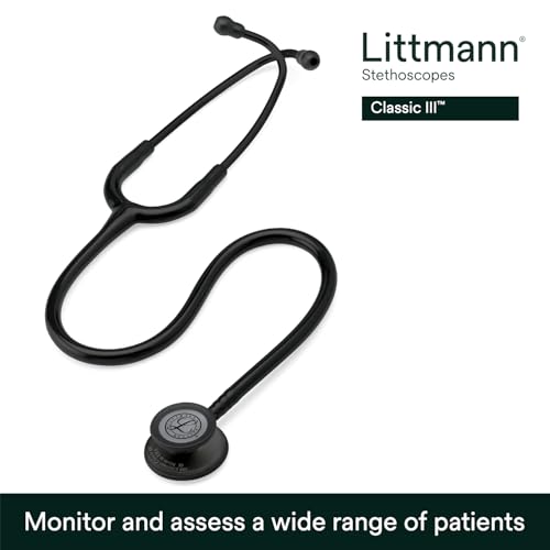 3M Littmann Classic III Monitoring Stethoscope, 5803, More Than 2X as Loud*, Weighs Less**, Stainless Steel Black-Finish Chestpiece, 69 cm (27") Black Tube, Stem and Headset