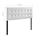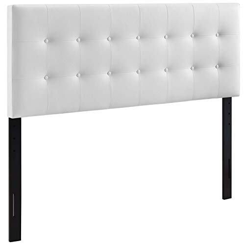 - TUFTED HEADBOARD - Classically elegant, this queen headboard features a tufted design that adds chic sophistication to any bedroom, creating an ideal backdrop for bedding and shams of many styles., PADDED HEADBOARD - Made with durable fiberboard and plywood, this sturdy upholstered headboard is padded with dense foam for comfortable, supportive relaxation, VEGAN LEATHER HEADBOARD - Quality Vegan Leather fabric covers this upholstered headboard. Boasting a tranquil hue, this headboard for queen beds incorporates a sense of calm and relaxation, STATEMENT PIECE - The perfect update for a master bedroom or guest room, this headboard for queen beds makes an elegant statement wherever it rests, ADJUSTABLE HEIGHT HEADBOARD - This upholstered Vegan Leather headboard has seven height adjustable mounting positions for a customizable look that attaches to most queen bed frames