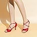 JIAJIA 20522 Women's Satin Sandals Flared Heel Latin Salsa Performance Dance Shoes Colour Red,Size 5.5 B(M) US/36 EU