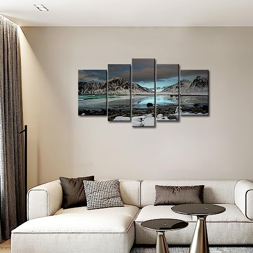 5 Piece Wall Art Painting Seagull Flying Over Mountain Lake Stones On Beach Pictures Prints On Canvas Landscape The Picture Decor Oil for Home Modern Decoration Print for Boys Bedroom
